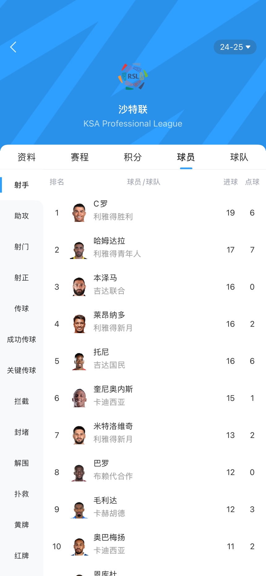 2025-03-15 16:58:30沙特聯(lián)射手榜:40歲C羅19球領(lǐng)跑,37歲本澤馬4輪球荒&16球排第三