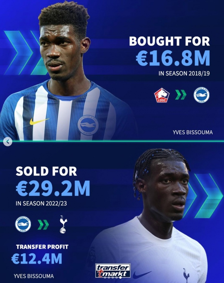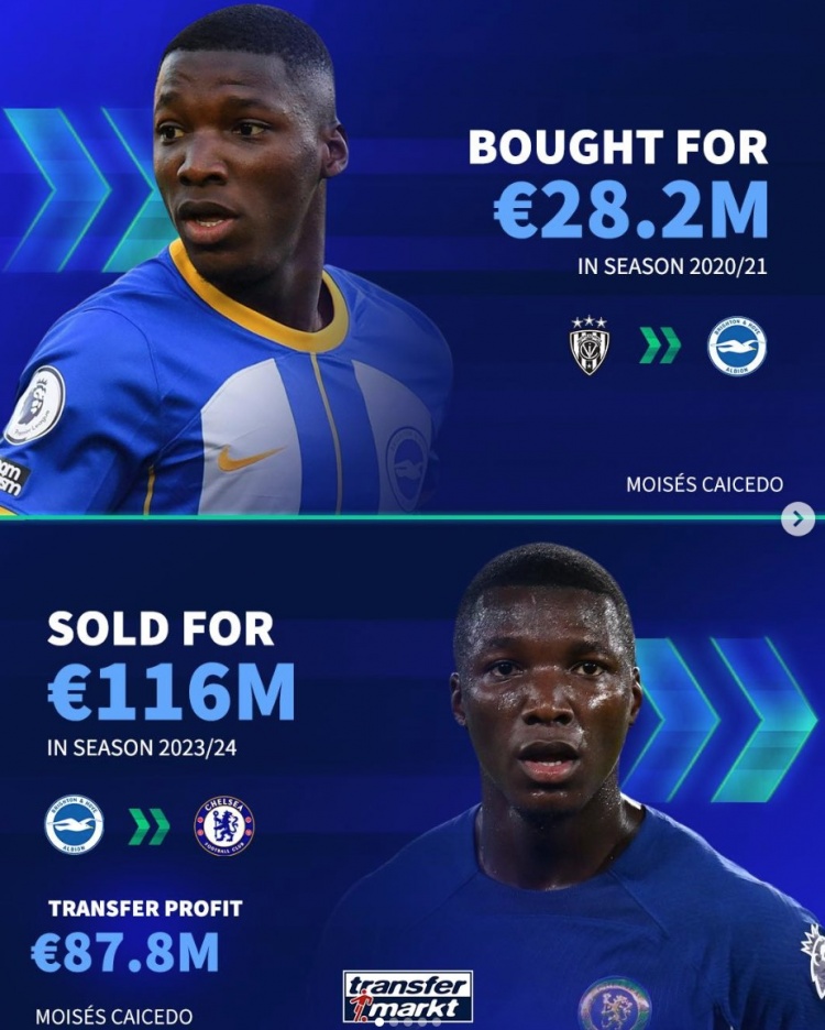 3月3日訊 《轉(zhuǎn)會(huì)市場(chǎng)》統(tǒng)計(jì)了布萊頓近年的5筆低買(mǎi)高賣(mài)轉(zhuǎn)會(huì)操作,共計(jì)凈賺超過(guò)2億歐元。