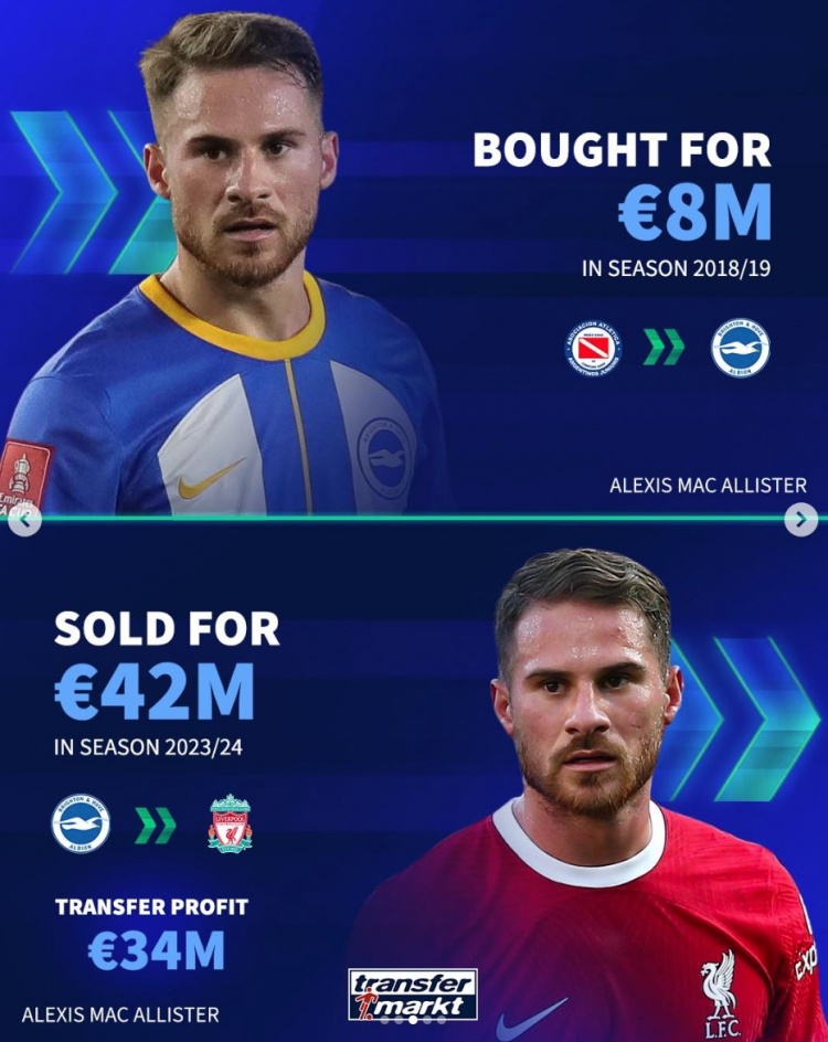 麥卡利斯特:800萬(wàn)歐元引進(jìn),4200萬(wàn)歐元出售,凈賺3400萬(wàn)歐元