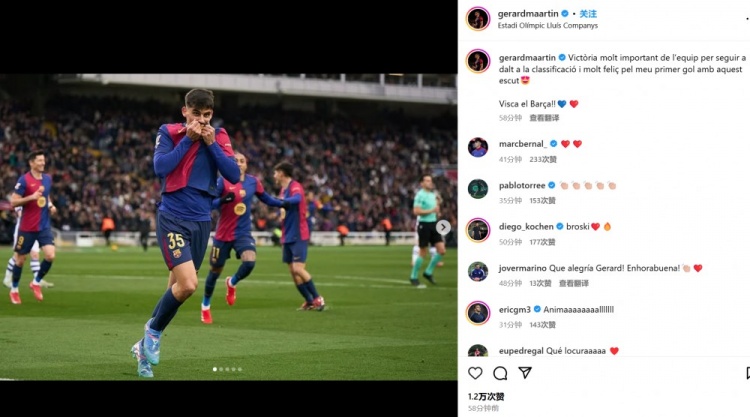 2025-03-03 08:38:35杰拉德-馬丁社媒:大勝對榜首至關重要,很高興能夠打進巴薩首球