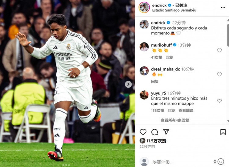 2025-03-05 10:46:32替補登場迎歐冠淘汰賽首秀,恩德里克社媒曬照:享受比賽每個瞬間