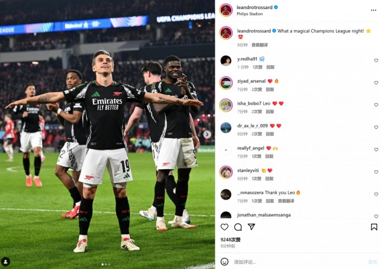 2025-03-05 10:46:377球大勝創紀錄,特羅薩德社媒慶祝大勝:多么神奇的歐冠之夜
