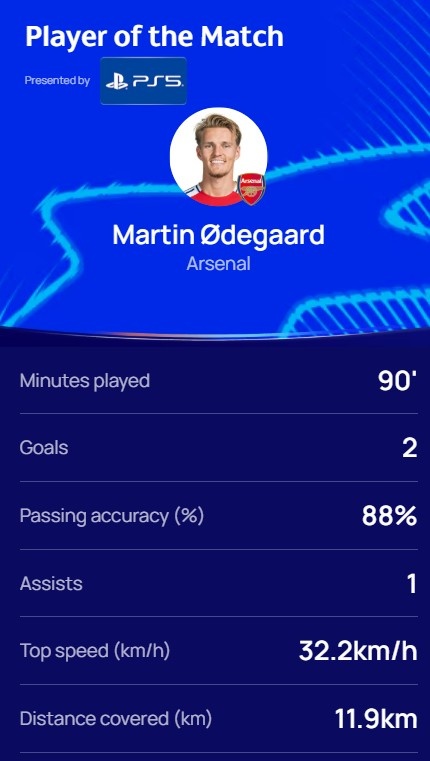 2025-03-05 10:48:362球1助攻,歐冠官方:厄德高當選阿森納7-1埃因霍溫全場最佳