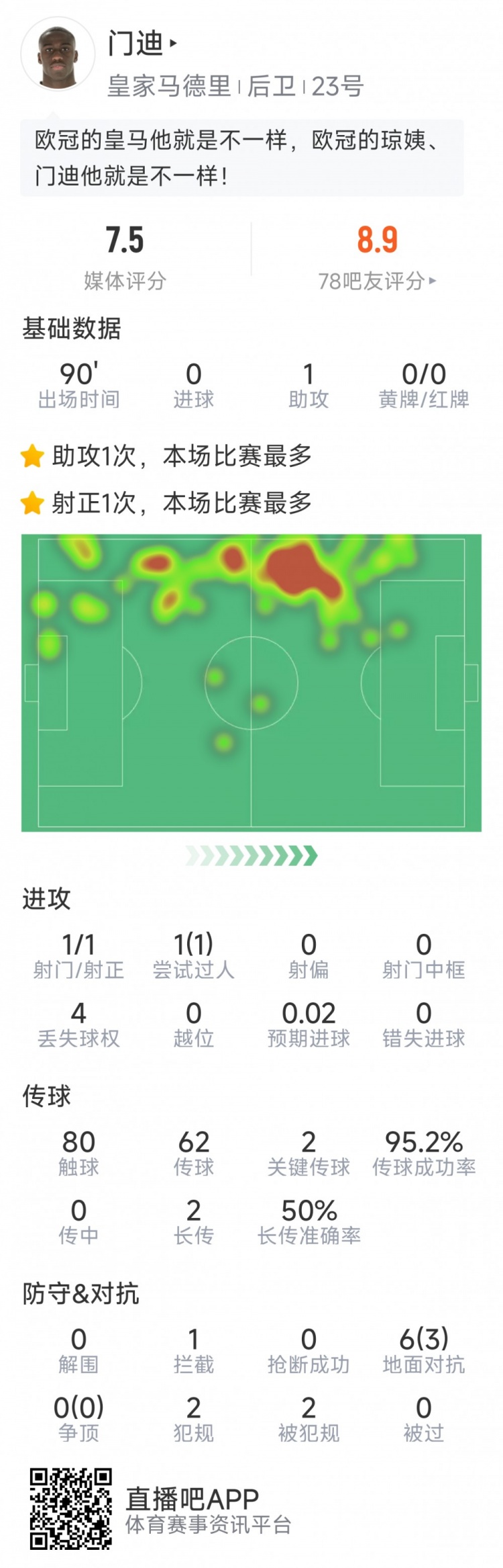 2025-03-05 10:48:40門迪本場數(shù)據(jù):1次助攻,1次射門,2次關(guān)鍵傳球,評分7.5分