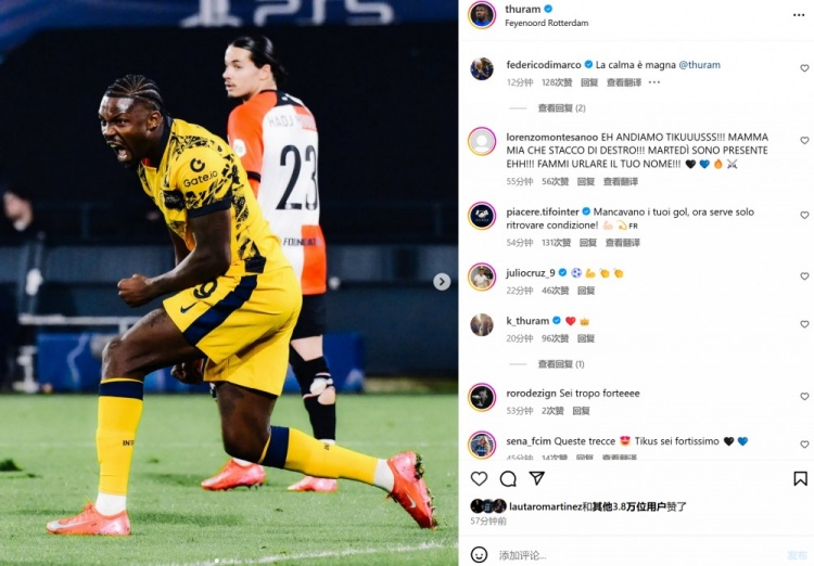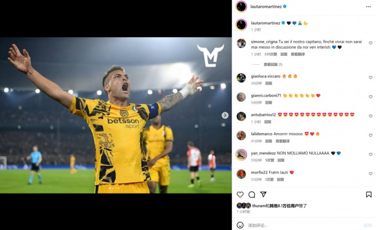 2025-03-06 10:24:29鋒線雙星雙雙破門,勞塔羅&小圖拉姆社媒曬怒吼慶祝照