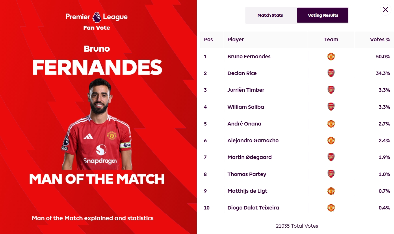 2025-03-10 05:58:48任意球世界波破門!B費當選曼聯1-1阿森納全場最佳