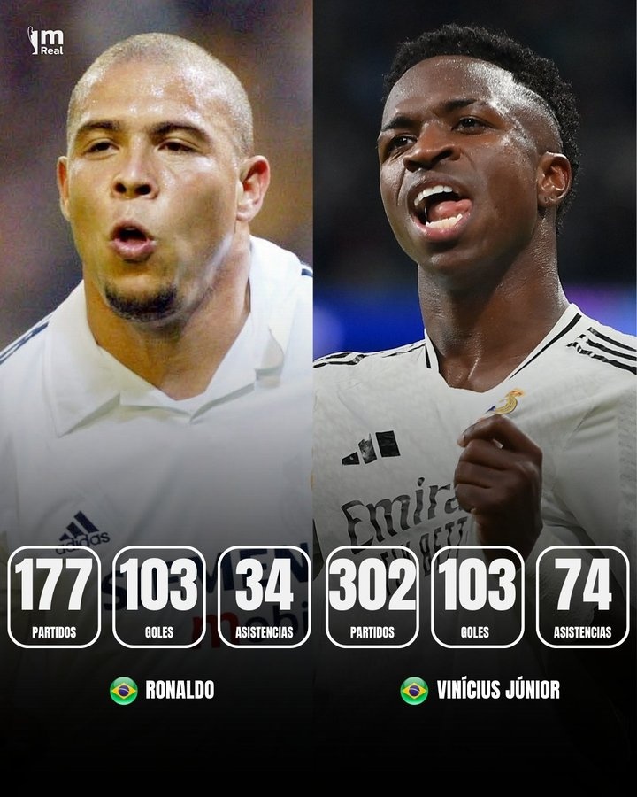 2025-03-10 05:59:21維尼修斯為皇馬打入103球追平大羅,并列隊內頭號巴西射手